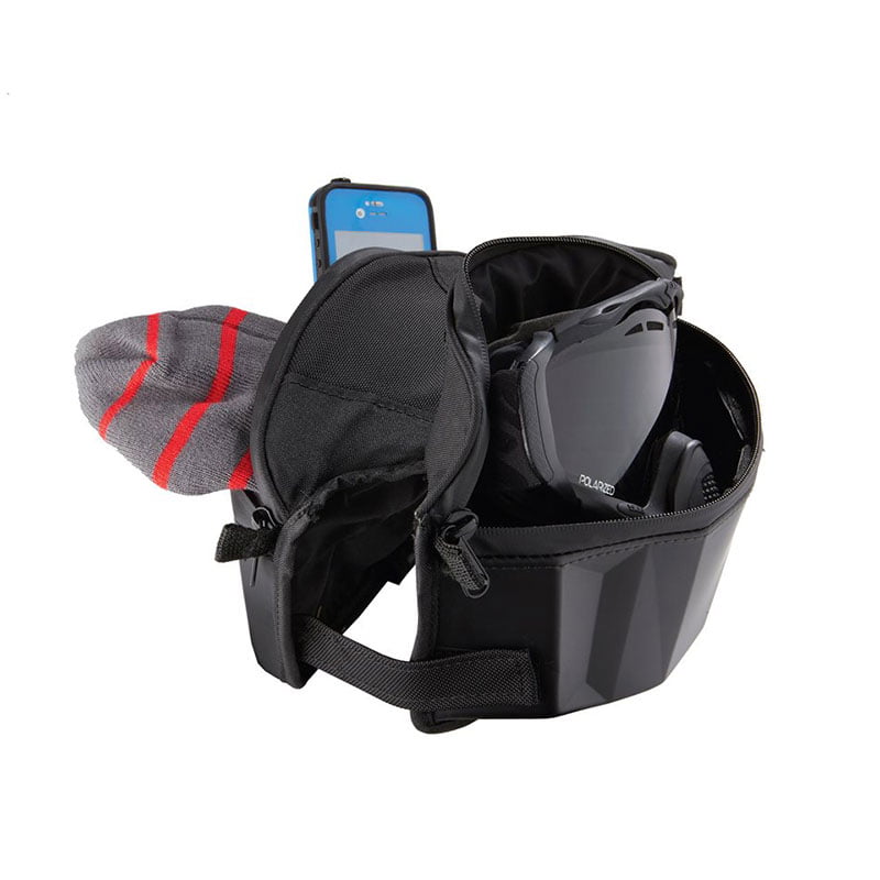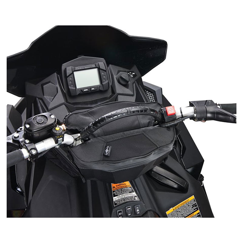 Positioned out of the way and close to the sled’s axis, a handlebar bag is one of the best and most secure ways to carry gear. Stuff goggles, an extra hat, camera, snacks or whatever else you need to have at your fingertips in the AXYS ProTaper Handlebar Bag. Easily secures with Velcro® straps so you can bring it into the cabin, motel room or truck at the end of the ride.