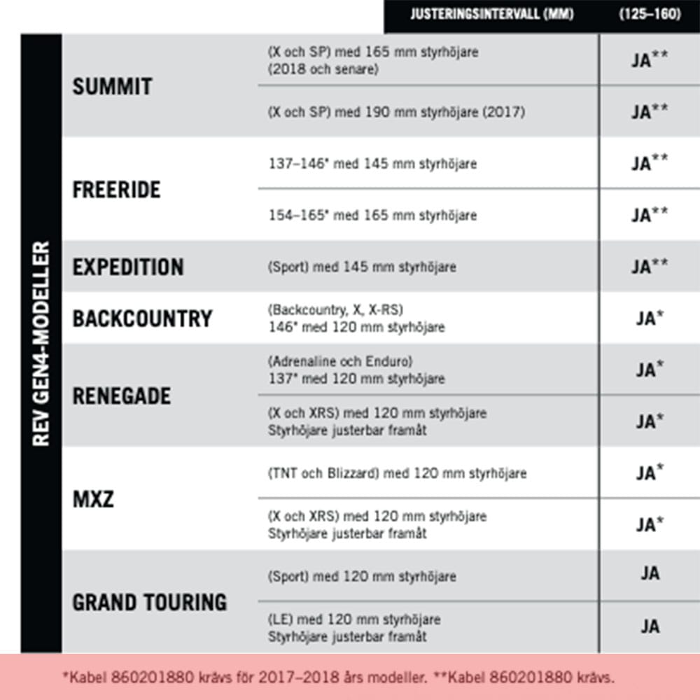 - Använd den lägsta positionen för körning på led och sittande körställning; höj till maxhöjd på några sekunder för stående körställning.