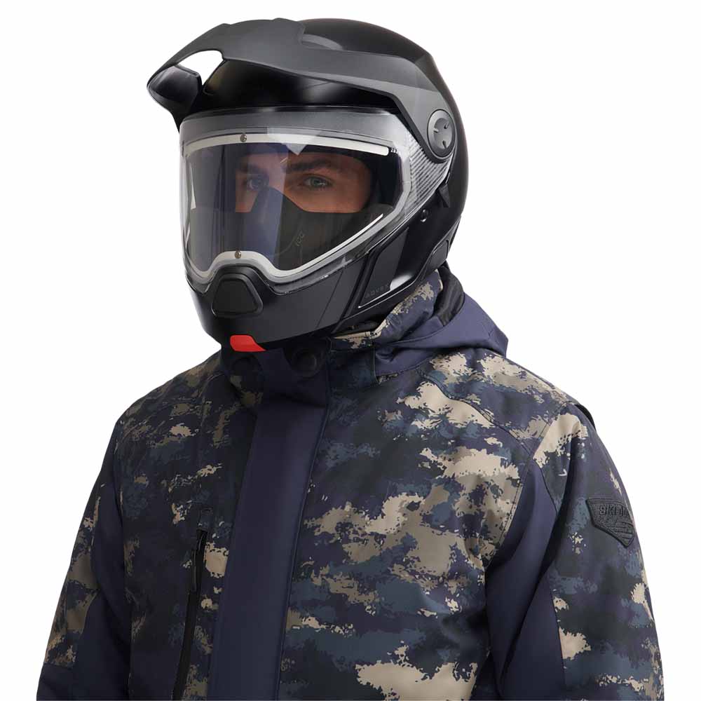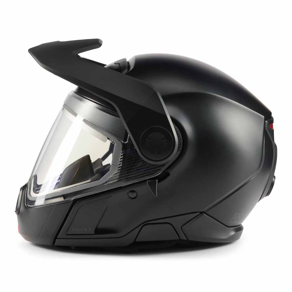 When only the best will do, reach for the all-new Advex Sport Radiant Helmet, designed with industry-leading features and first-of-its-kind technology. This dual-sport snowmobile helmet has everything an active rider needs: A lightweight M-Forge composite shell for high-tech protection and less rider fatigue. Adjustable vents and a heated shield to keep your sightline clear and the fog at bay. Plus, an innovative Jet style full-face opening that allows for quick sips and unmuffled chats. The new Ski-Doo Advex Helmet is also the first piece of protective gear designed to readily integrate with the Vibe Communications System from BRP, so you can stay in touch with your fellow riders all day long. Get ready for a whole new riding experience! DOT and ECE certified.
