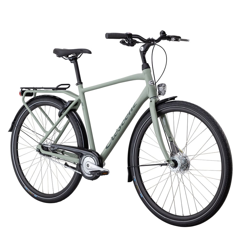Om du vill ha en cykel som bara går och går, då är Tarfek ett bra val. Den har en lätt, stark och rostfri aluminiumram och matchande utrustning. Växlar och bromsar är helt inkapslade, och lika väl skyddade från fysisk påverkan som från regn och smuts. De 7 växlarna ger dig ett brett register med kraft för såväl branta uppförslut som för långa, sköna utförslöpor och raksträckor med vinden i ryggen. Bak sitter en traditionell fotbroms och framhjulet bromsas med en effektiv rullbroms. Tarfek har skärmar, kedjeskydd, stöd, godkänt lås, batteri belysning och en rejäl integrerad pakethållare med klicksystemet AVS så att väskor och korg enkelt kan tas av och på. Sittställningen är upprätt. Styret är lätt vinklat för bästa ergonomi och i ändarna sitter sköna handtag monterade. Styrstammen är justerbar och du kan enkelt ställa in en något mer framåtlutad position om du trivs bättre med det. En lagom bred sadel speciellt utformad för män gör det lilla extra för komforten. Bekväm, kompetent och pålitlig, vad mer kan man önska sig?