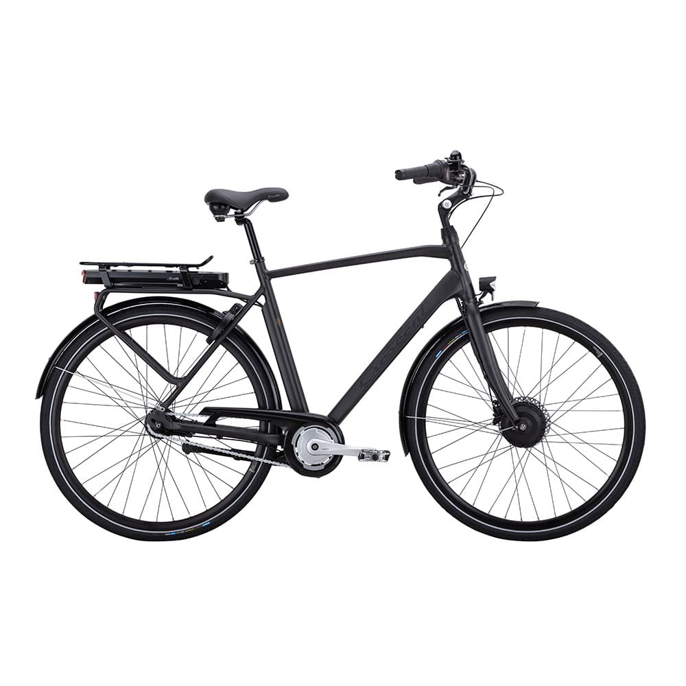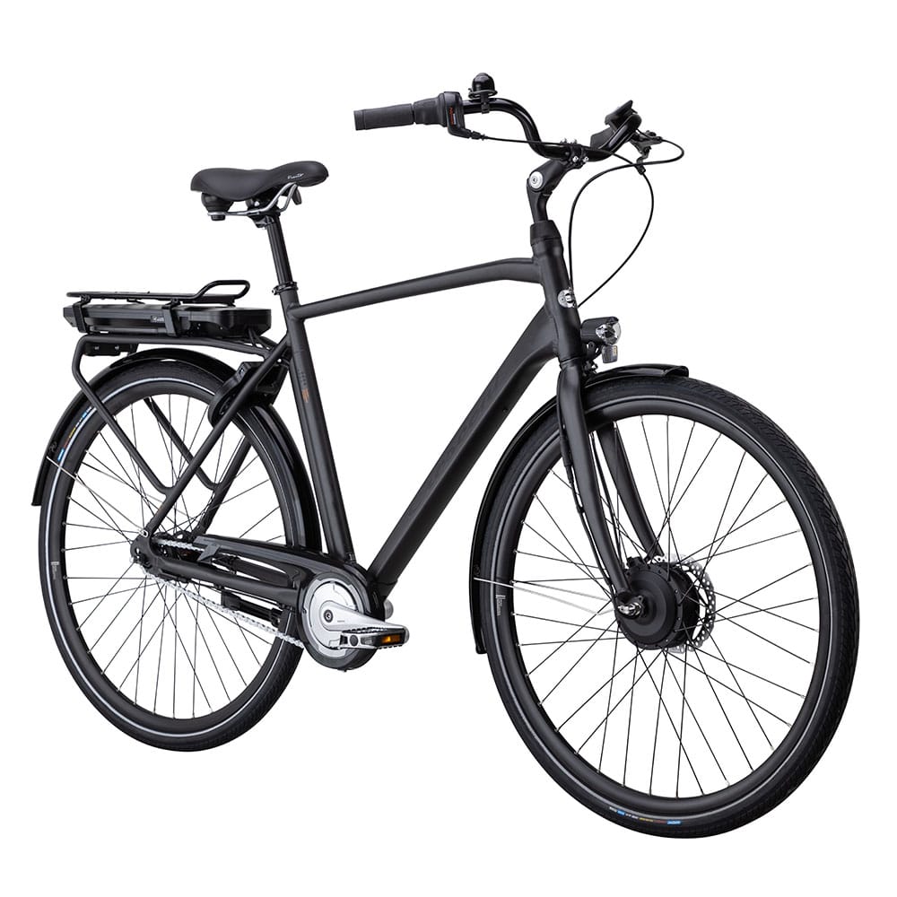 Allt är snyggt inbyggt i en 7-växlad herrcykel med tidlösa linjer, moderna bromsar, rejäla plåtskärmar, stöd, godkänt ramlås och belysning. 400 wh batteriet sitter enkelt åtkomligt i den kraftiga pakethållaren, som är utrustad med det smarta klicksystemet AVS, för väskor och korgar. Du laddar enkelt i cykeln eller genom att ta loss batteriet.