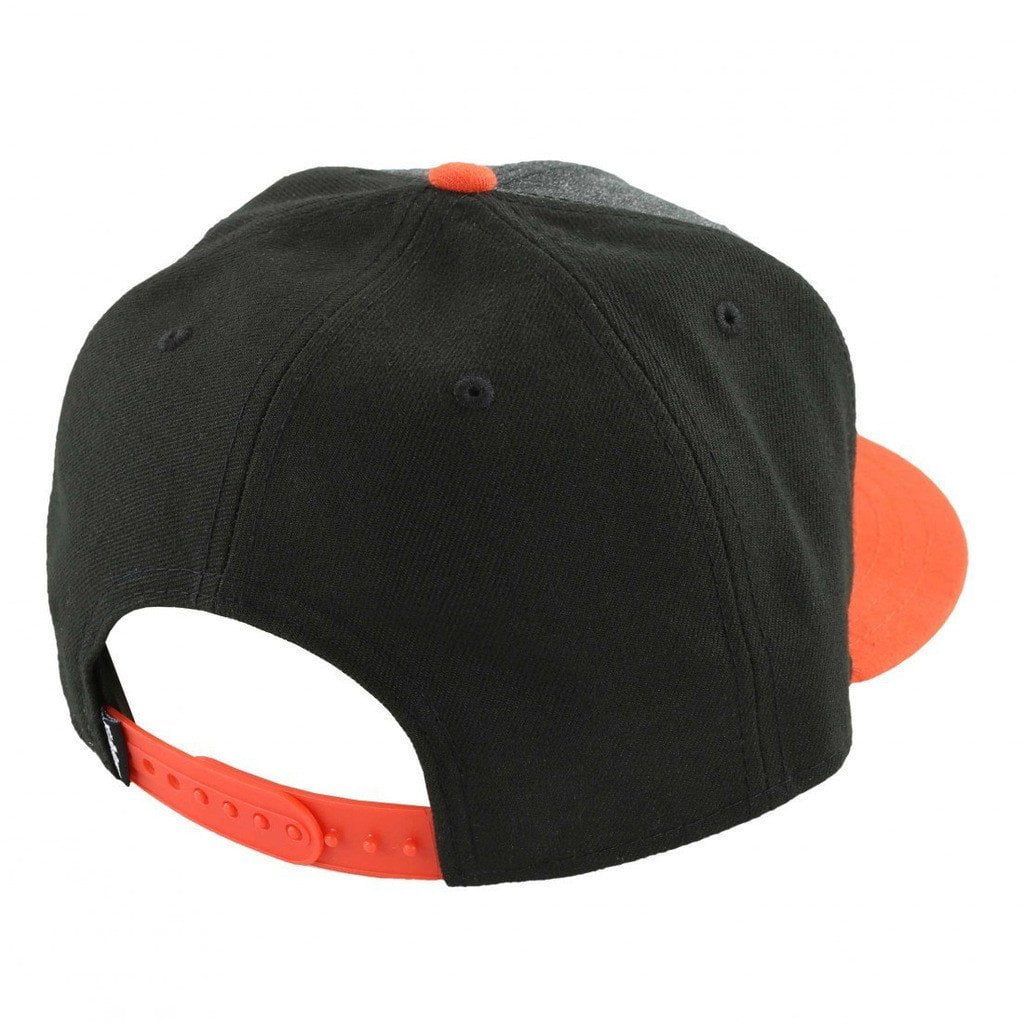 Structured snapback with cotnrast panels, Puff logo embroidery at crown, Flat Logo Embroidery, Rear FMF flag label at snap enclosure.
