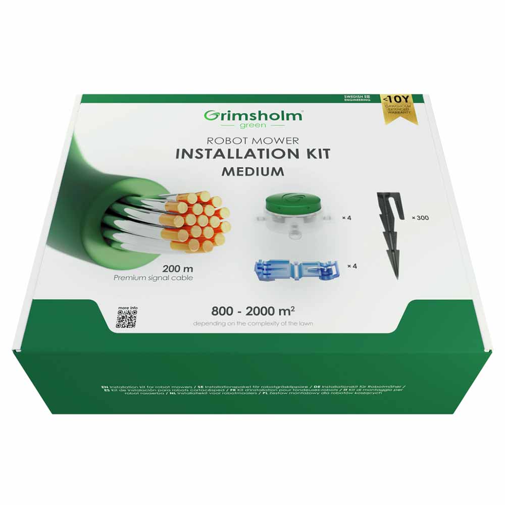Genom att använda Grimsholm´s installationspaket för robotgräsklippare kan man känna sig trygg med att få en driftsäker installation som håller år efter år. Kabeln i installationspaketen är alltid vår Premium-kabel som är tillverkad av kopparkärna med förtenning samt PE-isolering.