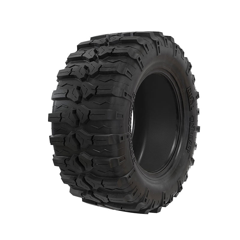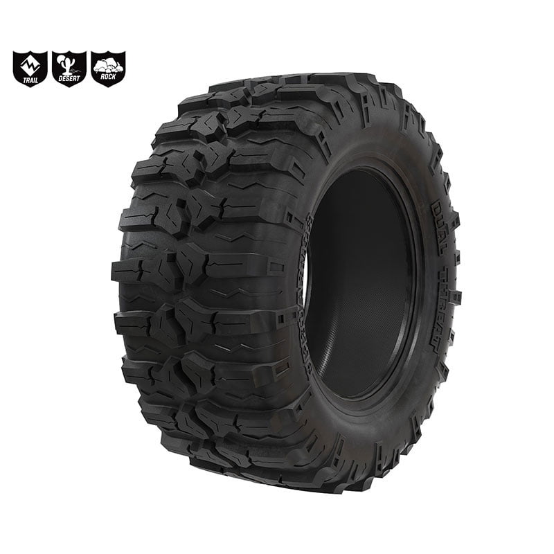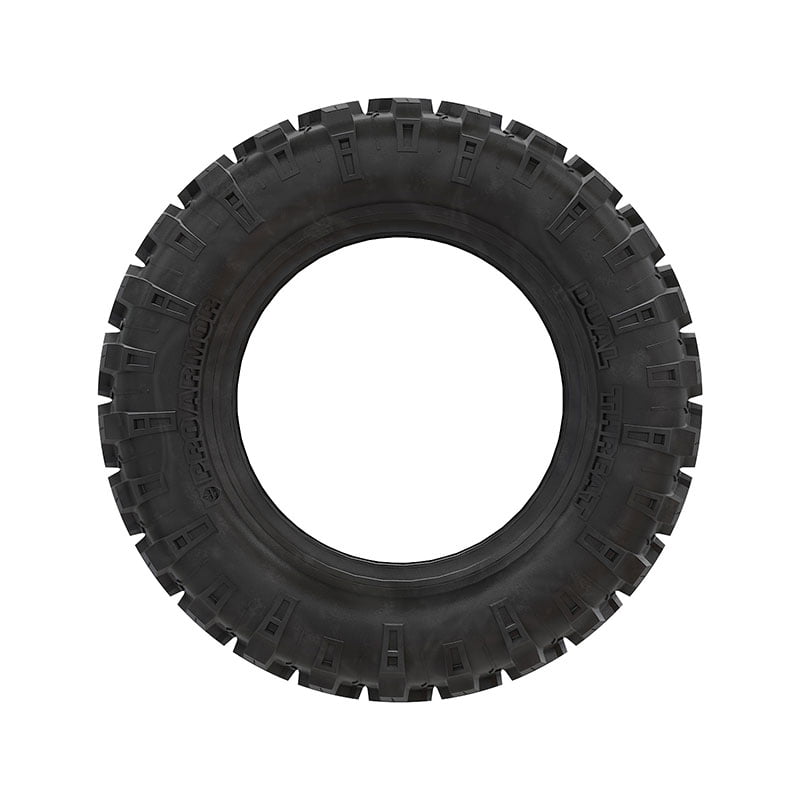 The Pro Armor® Dual-Threat tire was engineered with dual compound technology and radial construction to offer revolutionary off-road performance in all terrains. The lateral-grip compound on the outer edges of the tire have a softer durometer rubber for confident cornering performance and superior grip and feel. The long-wearing compound in the middle of the tire has a harder durometer rubber for increased traction during acceleration, straight line stability and overall longer tread life. Pairing unmatched wear and predictability with extreme cornering and traction, the Pro Armor® Dual-Threat is built to conquer mud, trails and rocks.